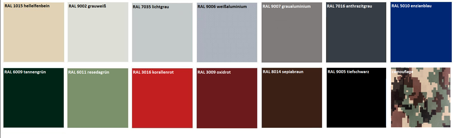 Here you will find all possible RAL standard colors that can be supplied for the sheet metal roofing of your hall.